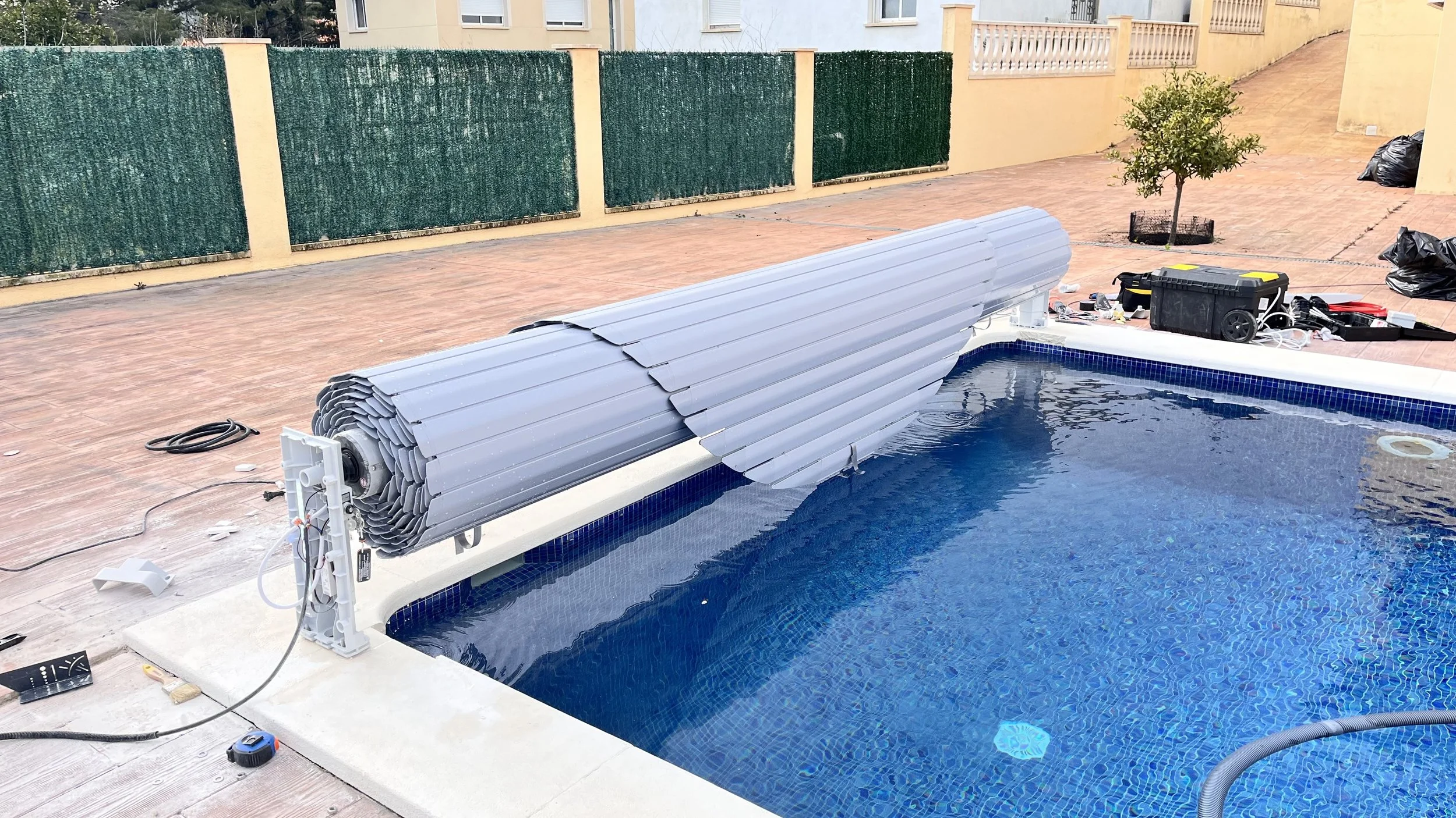 Si tu piscina ya esta construida existe la posibilidad de instalar una cubierta sumergida sin necesidad de realizar obras, basta con adaptar con un muro prefabricado y colocar el enrollador en la piscina.